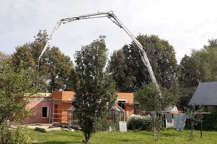 Прогнившие деревянные перекрытия были заменены на монолитную плиту для устройства полноценного второго этажа и новой кровли.