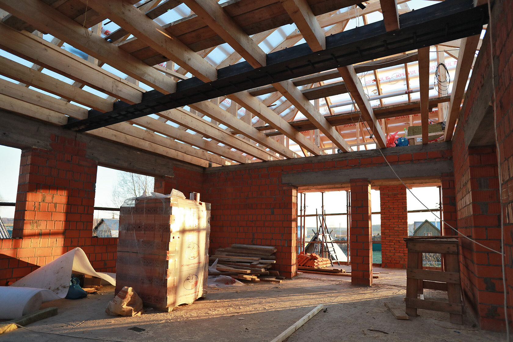 Первым делом мы демонтировали старую кровлю и перекрытия, сохранив прочные фасадные стены из векового кирпича.