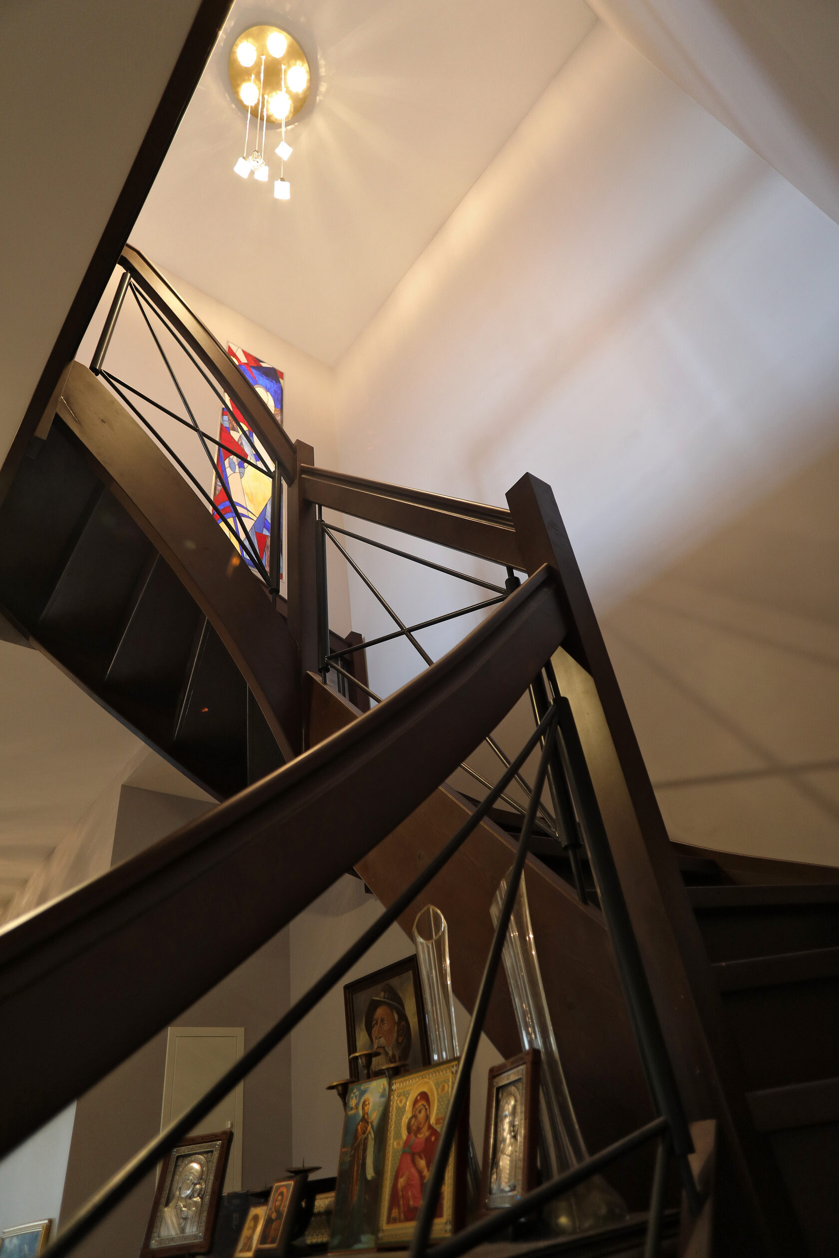 При минимальной площади, лестница обеспечивает комфортны подъём и идеально вписывается в интерьер дома.