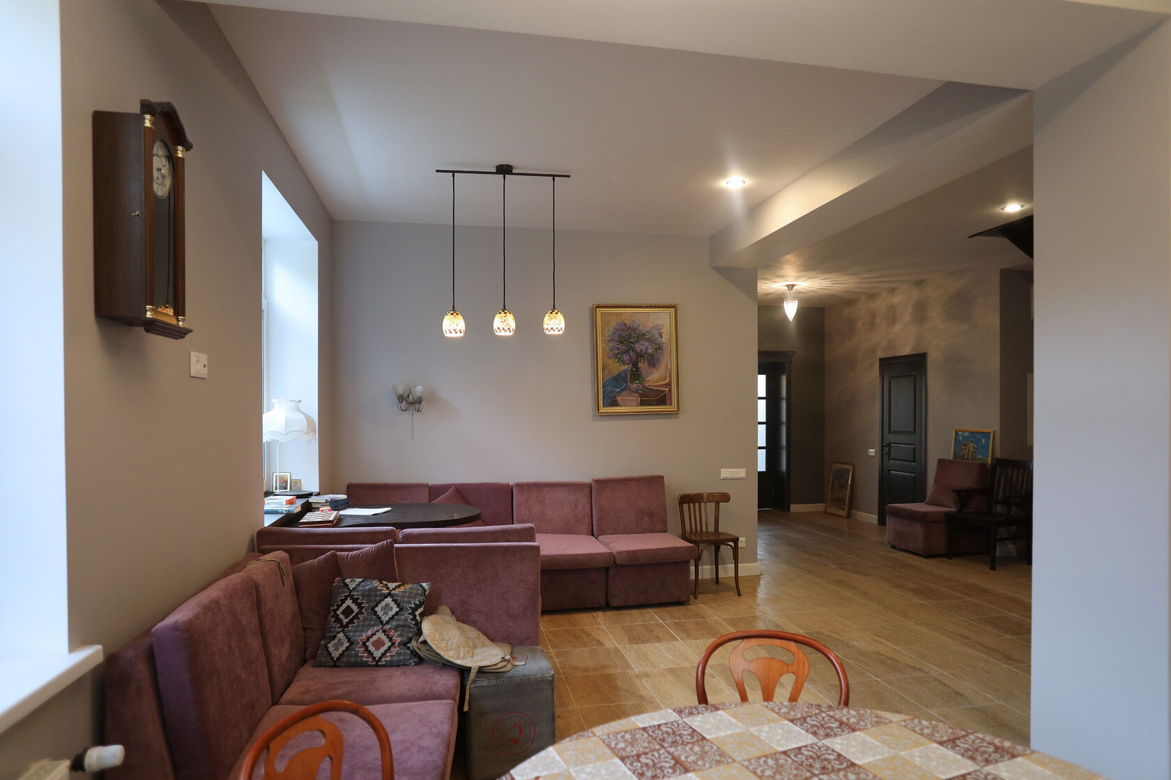 Особое внимание было уделено световым решениям: подвесные и настенные светильники добавили интерьеру тепла и уюта.