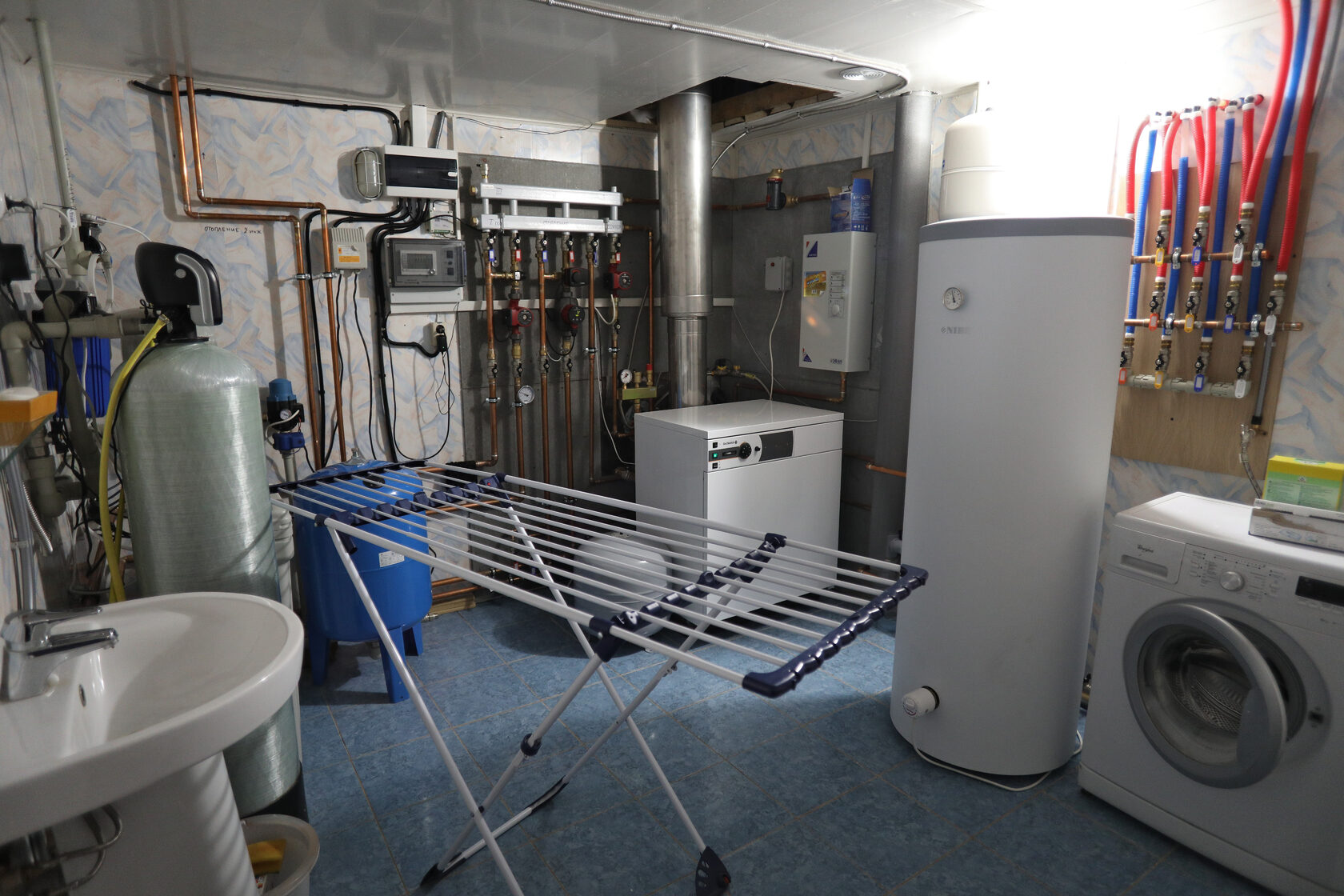Все коммуникации были заменены: установлен газгольдер, смонтирована новая котельная с автоматизированным дистанционным управлением, выполнена разводка электропроводки и труб, сделана вытяжная вентиляция и выложен новый дымоход для камина.