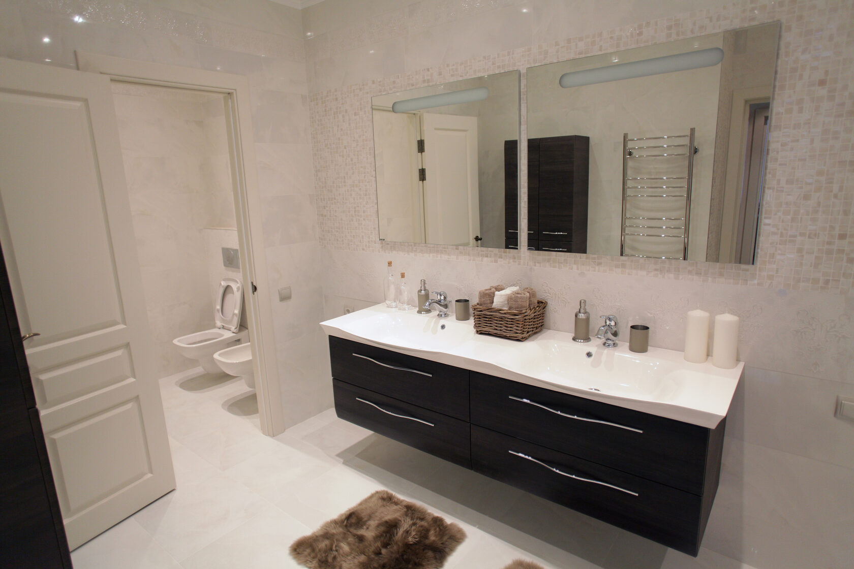 Удобства не обошли стороной санузел, мы добавили ночное освещение, биде, а также заказчик долго не мог определиться, что он хотел бы видеть ванную или душевую кабину. А почему бы не добавить вариативности?